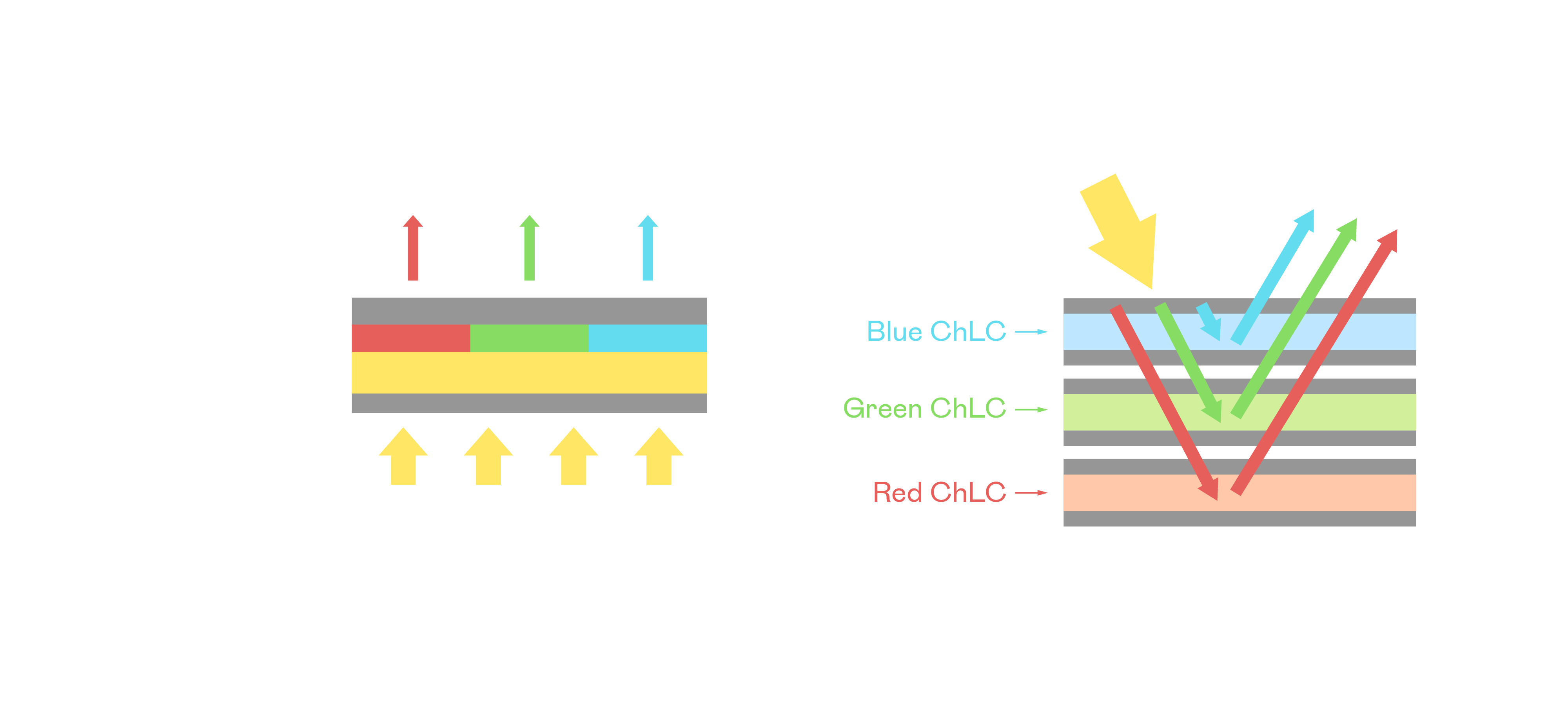 ChLCD 胆固醇液晶就如同纸张一样,透过反射环境光来显示影像,因此长时间观看不易造成人眼视觉疲劳,可达到护眼效果。当处于户外阳光下使用,LCD 影像容易失真而不易观看,但胆固醇液晶仍可维持较佳的影像品质。